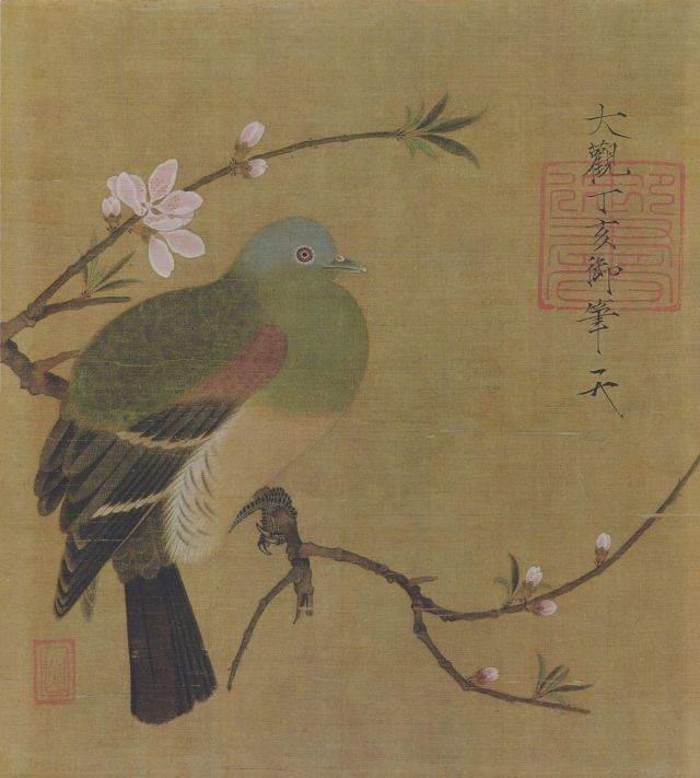 宋徽宗赵佶《桃鸠图页》日本东京国立博物馆藏