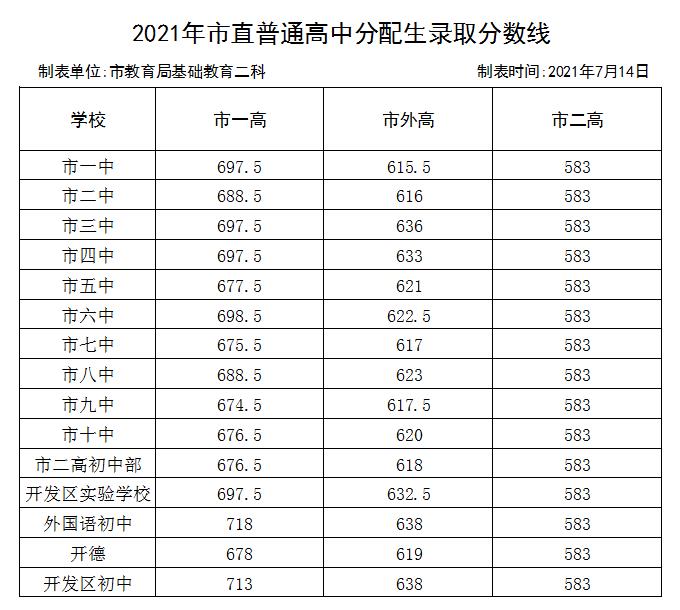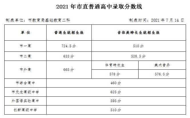 2021年中考分数线