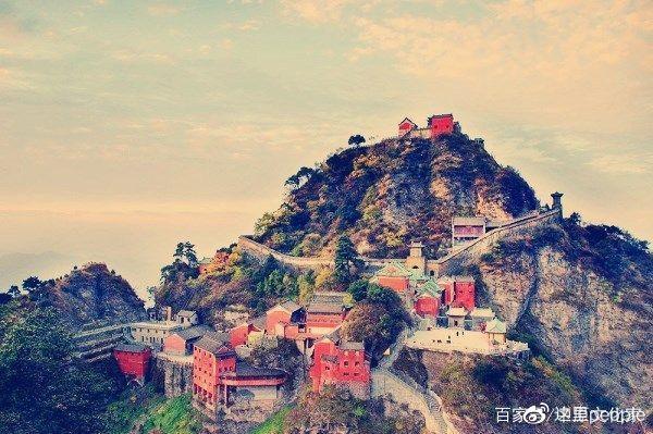 武当山,中国道教圣地,武当山古建筑群,建于唐朝贞观年间,明代扩建后达到鼎盛。明永乐年间大建武当山,历时12年,建成33座建筑群,嘉靖年间又扩建与修复。