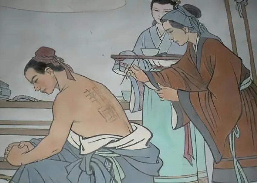 战事爆发后,岳飞再次投军,岳飞的母亲是一位深明大义的妇人,非常支持儿子的做法,临别前,在岳飞的背上刺下了“尽忠报国”(后世传为精忠报国)四个字。