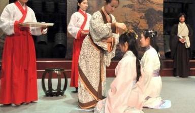 正式举行及笄礼那天,及笄者要进行沐浴梳洗并在东房等候,待宾客来临入座,音乐演奏之时,及笄礼开始。
