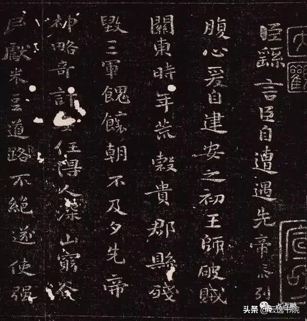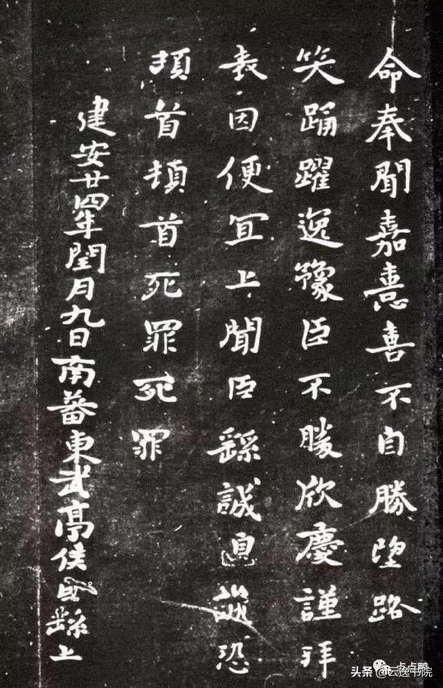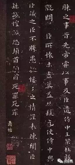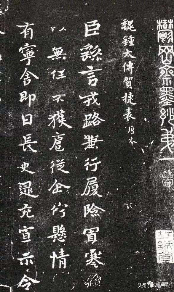 03、《贺捷表》又名《戎路表》、《戎辂表》,东汉建安二十四年(219)钟繇六十八岁时写。内容为得知蜀将关羽被杀的喜讯时写的贺捷表奏.此系最能代表钟书面貌的一帖。