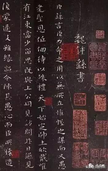 更具历史意义的是,此帖所具备的点画法则、结体规律等影响促进了楷书高峰——唐楷的到来。因此,钟繇《宣示表》可以说是楷书艺术的鼻祖。