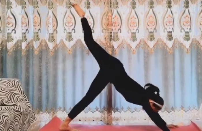 但你看她的运动状态,简简单单的瑜伽动作,却被她做出几分优美和雅致。倒有一些舞蹈艺术家的气质。