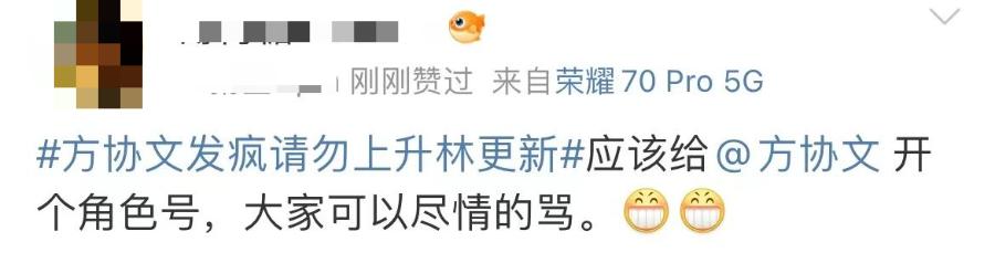林更新的粉丝到处去灭火,甚至建议剧组开一个角色号,这样大家就可以直接去骂方协文了。