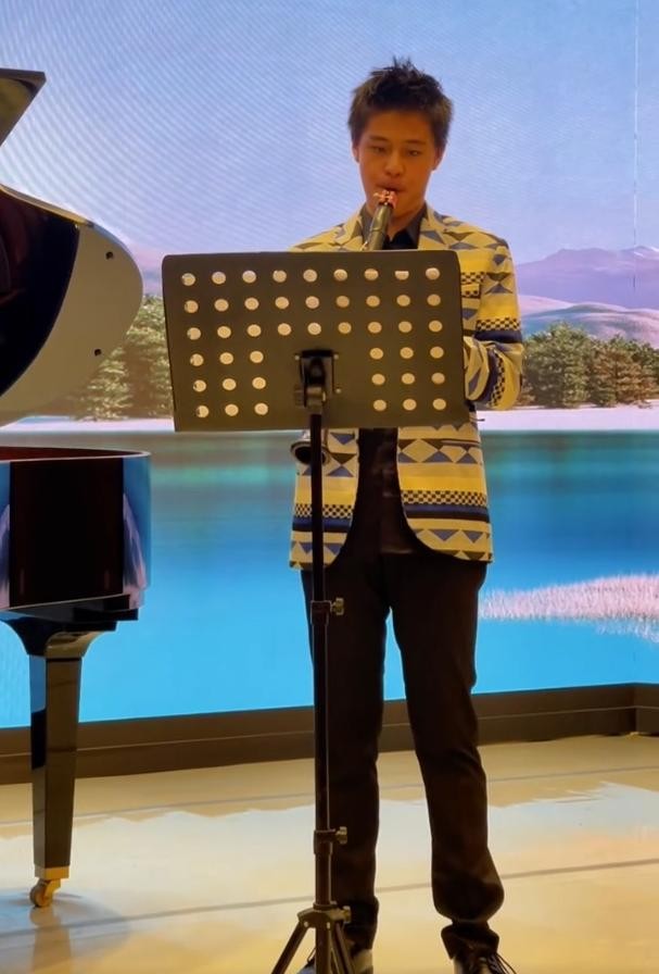 之前他还发了一个视频是儿子吹奏黑管的视频,应该是在参加某场比赛。