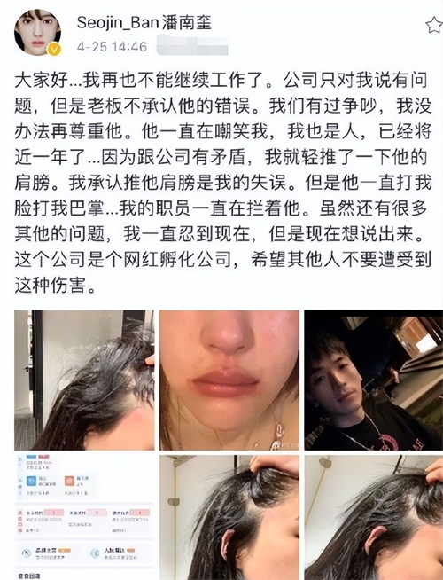不久之后,潘南奎发布受伤信息的微博就被删除,这看起来完全就是账号被经纪公司操控的证据,也让吃瓜群众更加同情潘南奎的遭遇。
