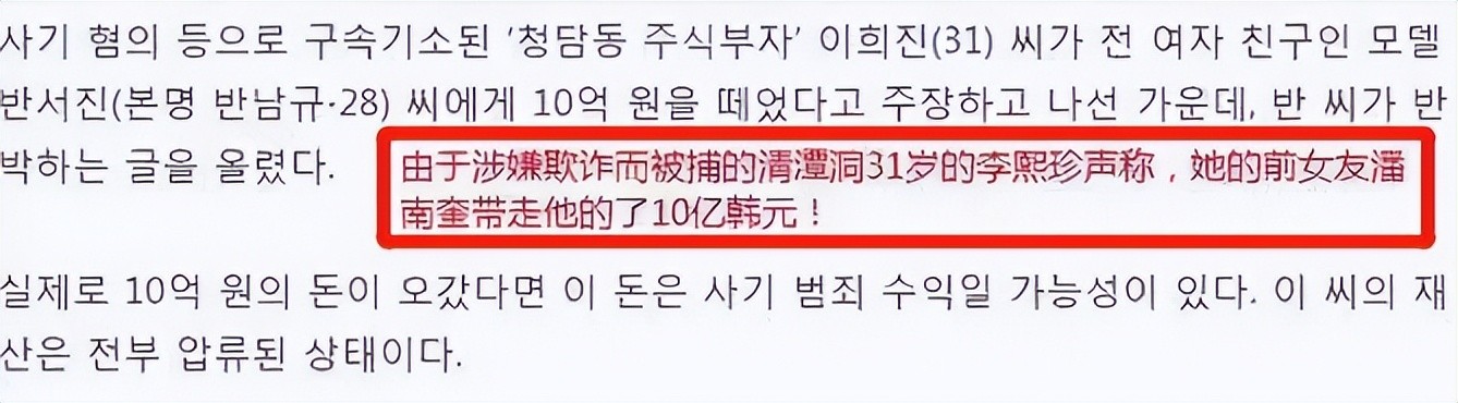 令人没想到的是,潘南奎完全没有和老公一起共度风雨的想法,据说她将李熙真的10亿财产转移后,便火速提出了离婚。