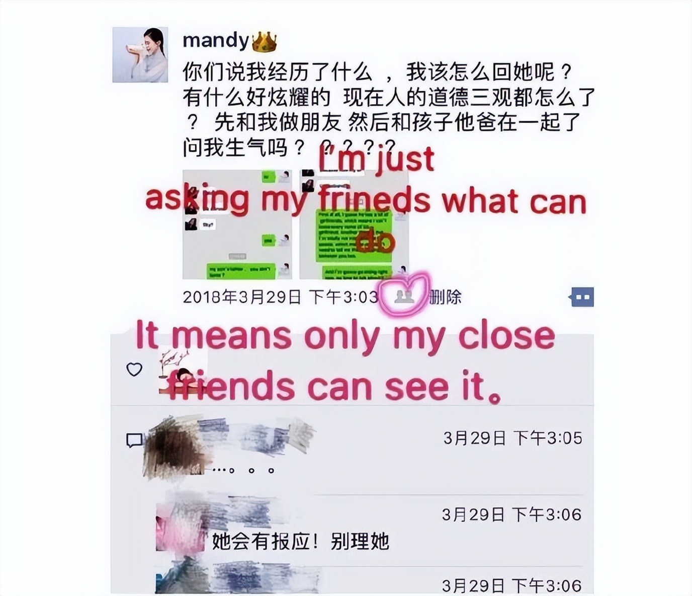 离谱的是,潘南奎不知道使了什么手段,让Mandy老公主动跳出来帮自己吸引火力,这个渣男还宣称事情都是Mandy搞出来的,因为她想要孩子绑住自己的诡计没有得逞,所以找借口摸黑潘南奎。