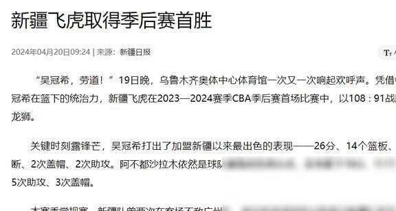 最近,CBA季后赛中,新疆队的吴冠希引人注目。他并非普通球员,而是富二代出身,然而他的篮球之路并不平坦。