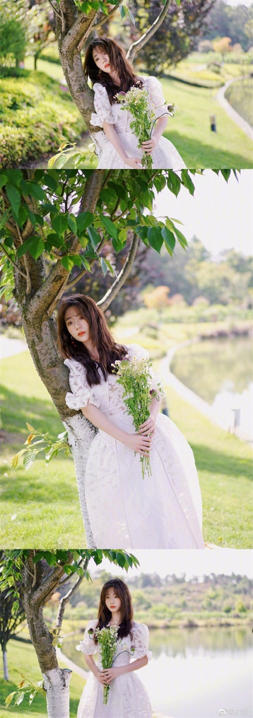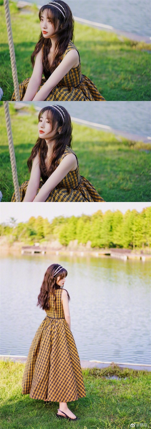 邢菲晒湖边两套复古仙气装扮写真 恬静笑容为夏日增色