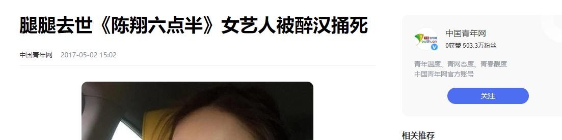 腿腿去世《陈翔六点半》女艺人被醉汉捅死-中国青年网