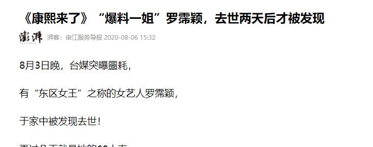 《康熙来了》“爆料一姐”罗霈颖,去世两天后才被发现