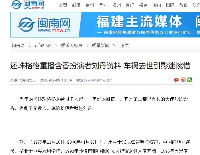 还珠格格重播含香扮演者刘丹资料 车祸去世引影迷惋惜-闽南网