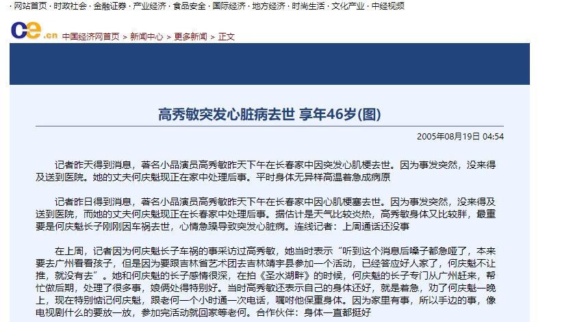 只不过之后三人因为种种原因没有接着合作,再次传来的就是高秀敏的死讯,高秀敏在家中因为心肌梗塞去世,甚至都没有来得及送到医院。