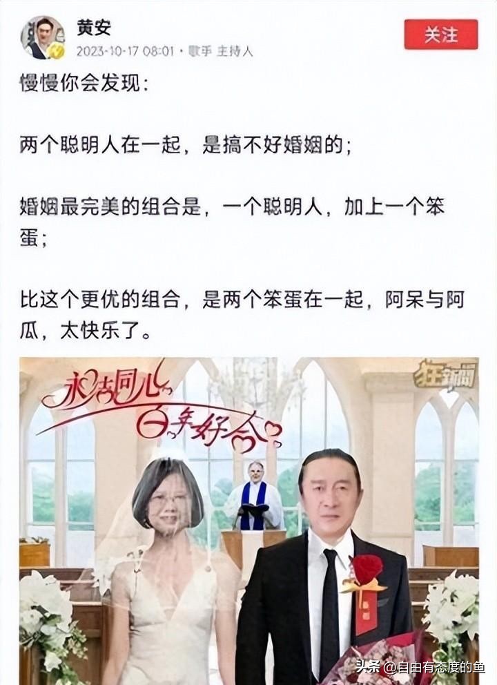 歌手黄安晒出与蔡英文结婚照,疑似抠图,网友纷纷在评论区留言