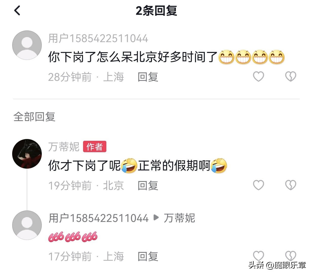 分享的视频时刻充满着生活乐趣,但在短视频评论区,有些网友非常毒舌,认为万蒂妮离开上海回家乡北京过年,是否不再回来。于是直言“是不是你下岗了?去北京那么久”。
