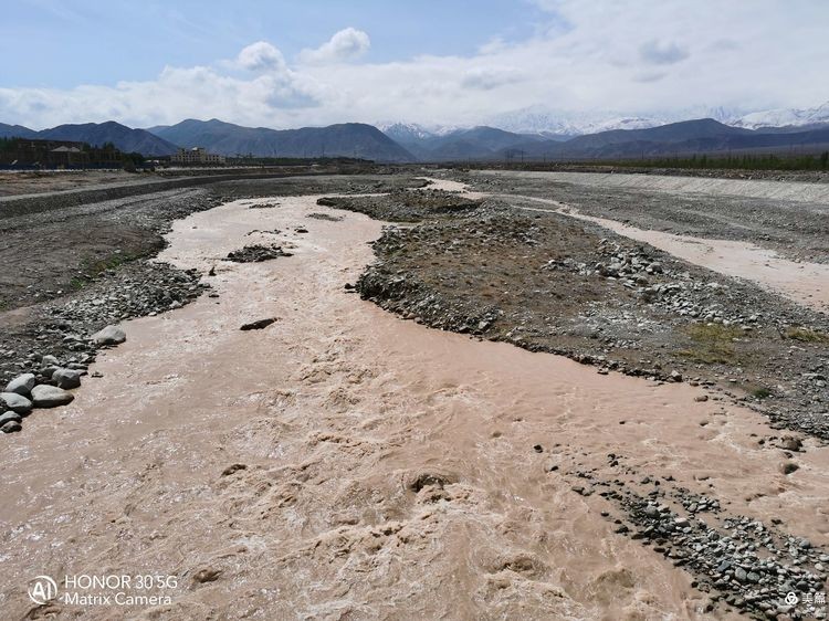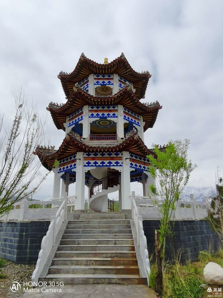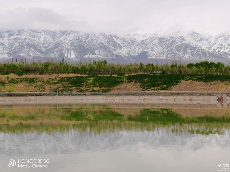早点后信步县城。先来到了水上公园,远处的雪山映入眼帘,这是连续两日雨雪后的盛景,平日是不多见的。