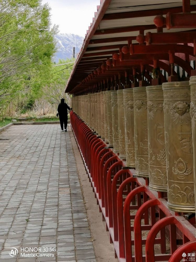转经筒金碧辉煌,佛塔庄严耸立,为数不多的信徒们烧香拜佛,像是一个佛教的世界。