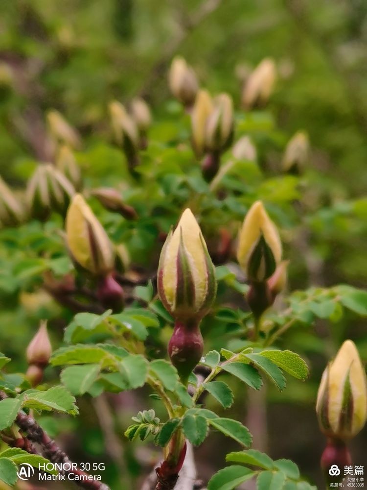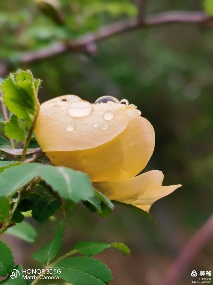 来到了人民公园,雨后盛开的黄刺玫娇艳欲滴,晶莹剔透的水滴附着在花蕾上,何曾见过这样的景像,忍不住多拍了几张。水滴何澹澹,此处是家乡。
