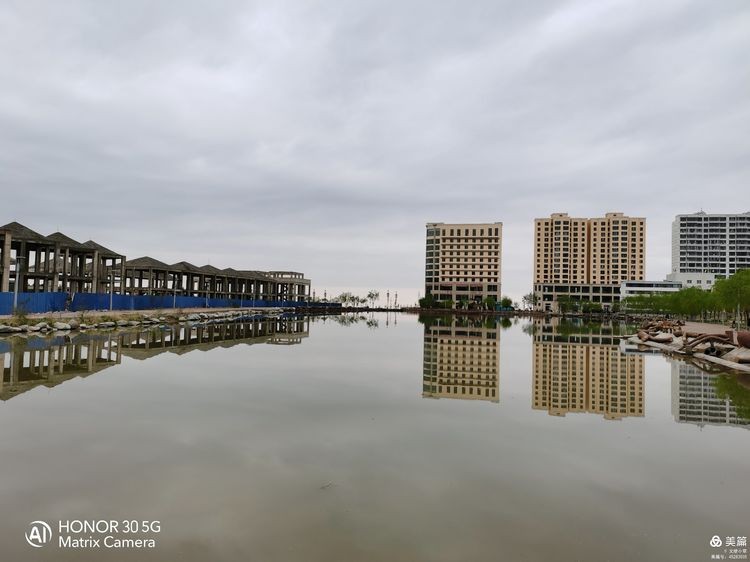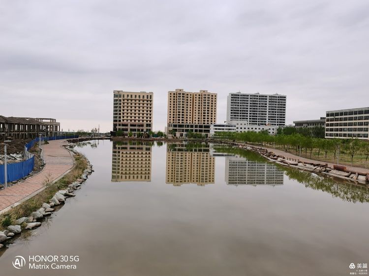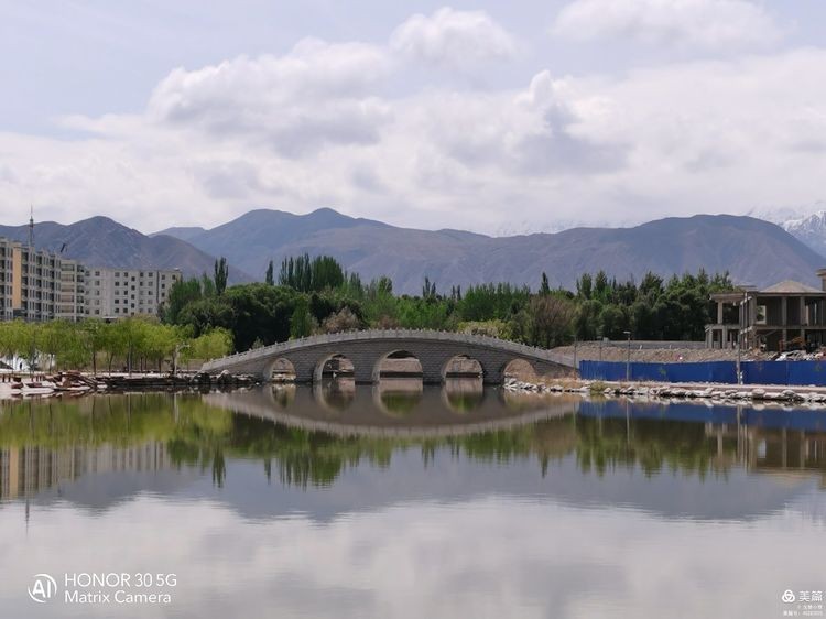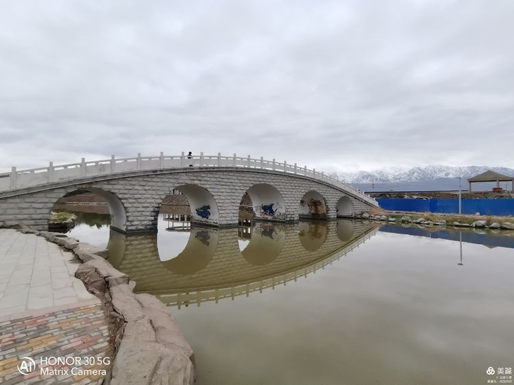 水上公园是近几年才建成的,高楼倒影湖面好像是水乡一般,五孔桥的画面让人感觉到了江南。