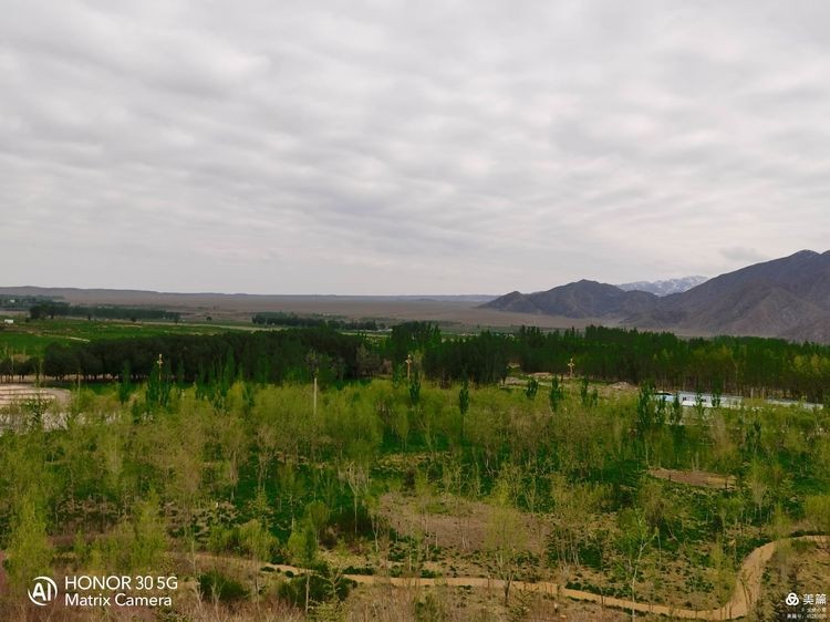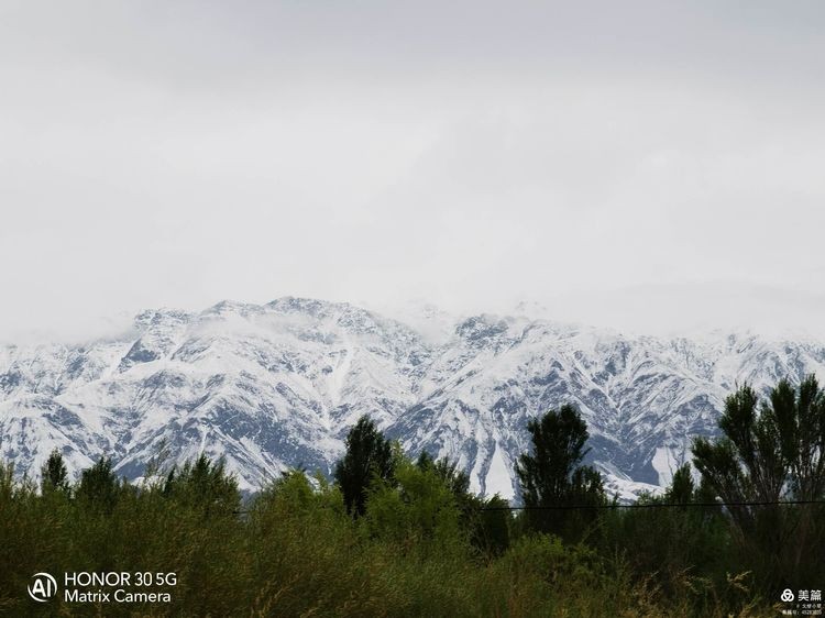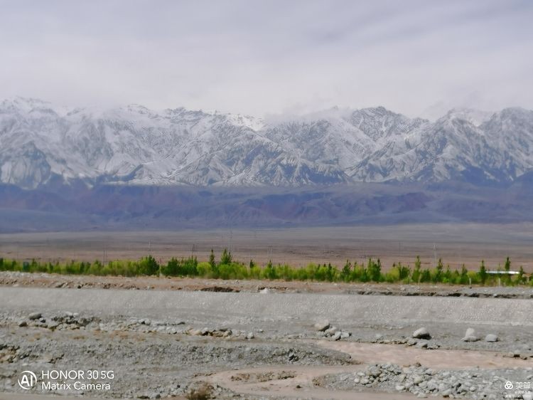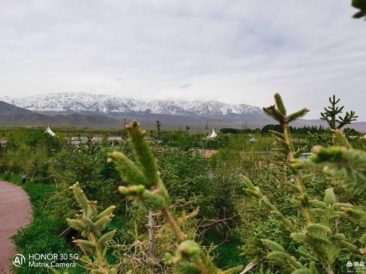 继续前行到紫亭湖景区,那个去年夏天我已经来到过的地方。雪山总是映入眼帘,路边的树上挂满了紫红色的小果果,猜一猜吧,那是去年已经成熟的沙枣树的果实,我们把它叫做沙枣。那种像毛茸茸虫子一般的植物是我们叫毛柳的植物,它不同于一般的柳树,是西北地区一种特有的植物,伴随了我少年成长的岁月。
