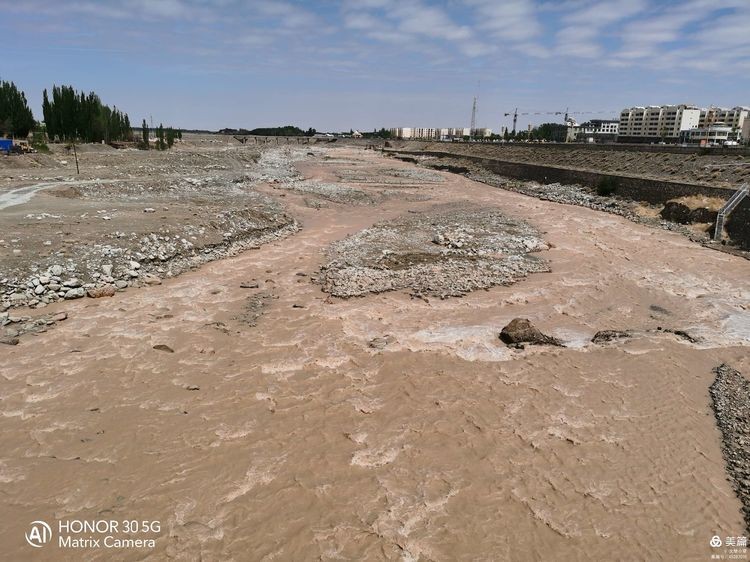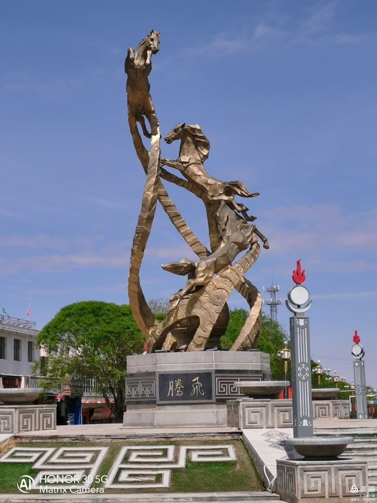 党河的水啊日夜流淌,象征人们的幸福生活源远流长。那座矗立在路中央的腾飞雕像寓意着中华民族不断腾飞!