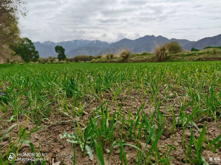 茁壮成长的麦苗让您来到肃北吃喝不愁。