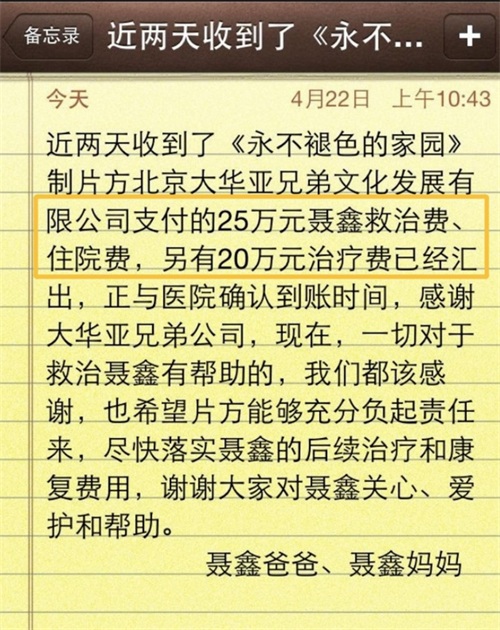 剧组给予的补偿费用也只是冰山一角,聂鑫的父母也已经掏空家底,到了山穷水尽的地步。