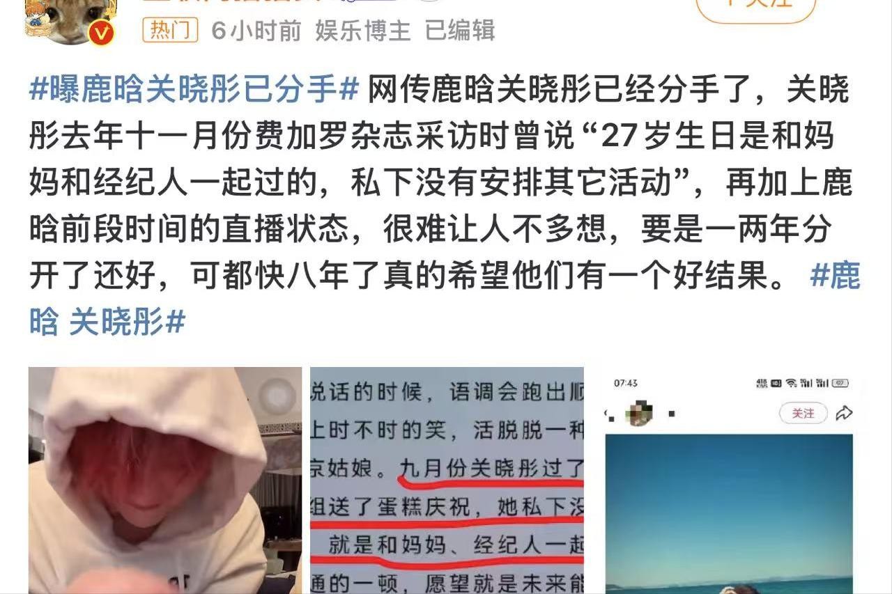 真分了?疑似知情人士曝鹿晗关晓彤去年冷战三个月,如今已分手