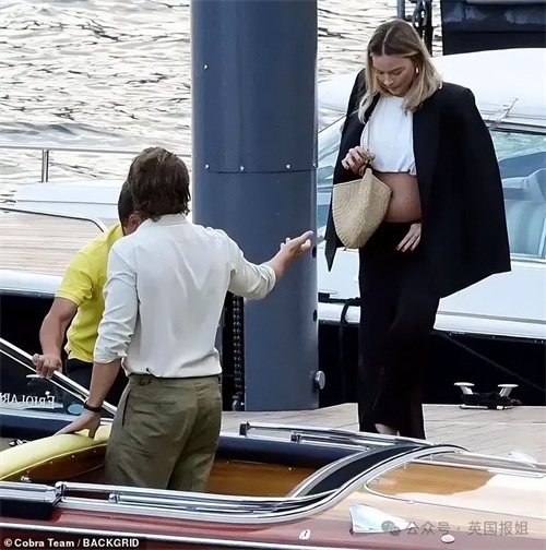 她并没有刻意掩盖自己凸出的小腹,行动小心翼翼,上下船时都有人搀扶。