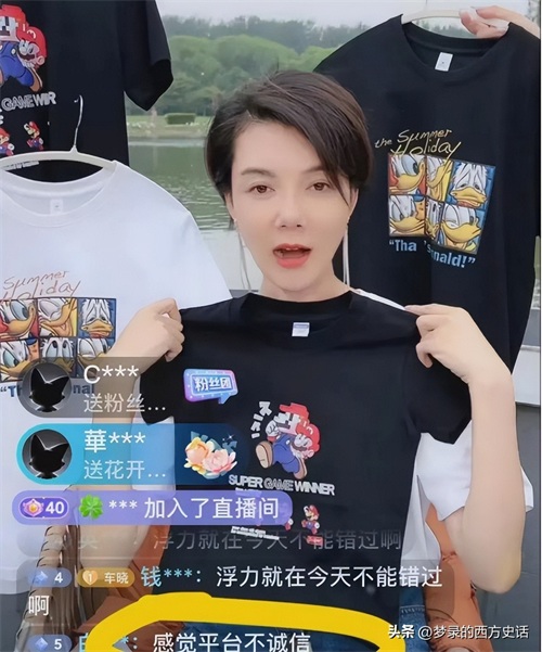 或许是选品上过于匆忙,整场直播一会卖化妆品,一会卖短袖。