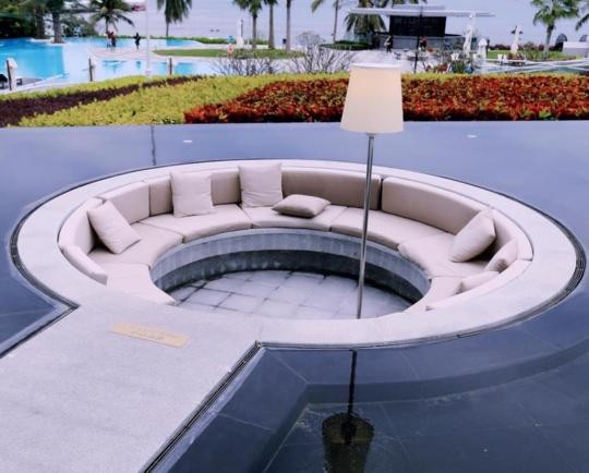 楼下的海边游泳池可以说完全满足海边度假的需求,不过有一个比较网红的拍照点是户外大沙发,这里经常有各类网红小姐姐打卡拍照。