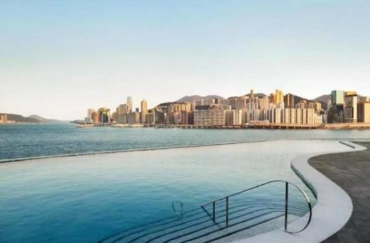 180度落地大窗,在房间里就可以随时饱览迷人的维多利亚港美景。在香港这种寸土寸金的地方,性价比可以说很高了。而整个酒店最圈粉的地方就是它的无边泳池,位于酒店的四层,当你置身其中的时候,仿佛泳池边际与大海相连,视野开阔,心情愉悦。