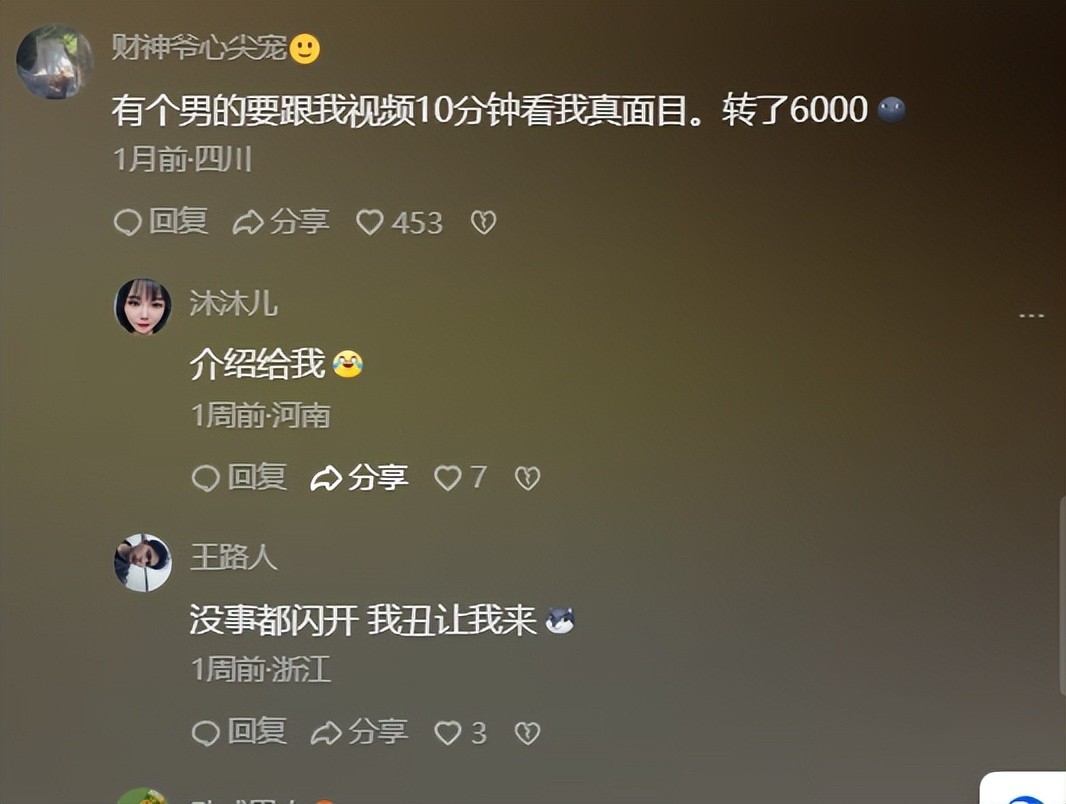 我长得也不丑,不行你把这位大哥介绍给我吧,让他和我视频,不是我吹,估计比你转的多,哈哈哈哈。