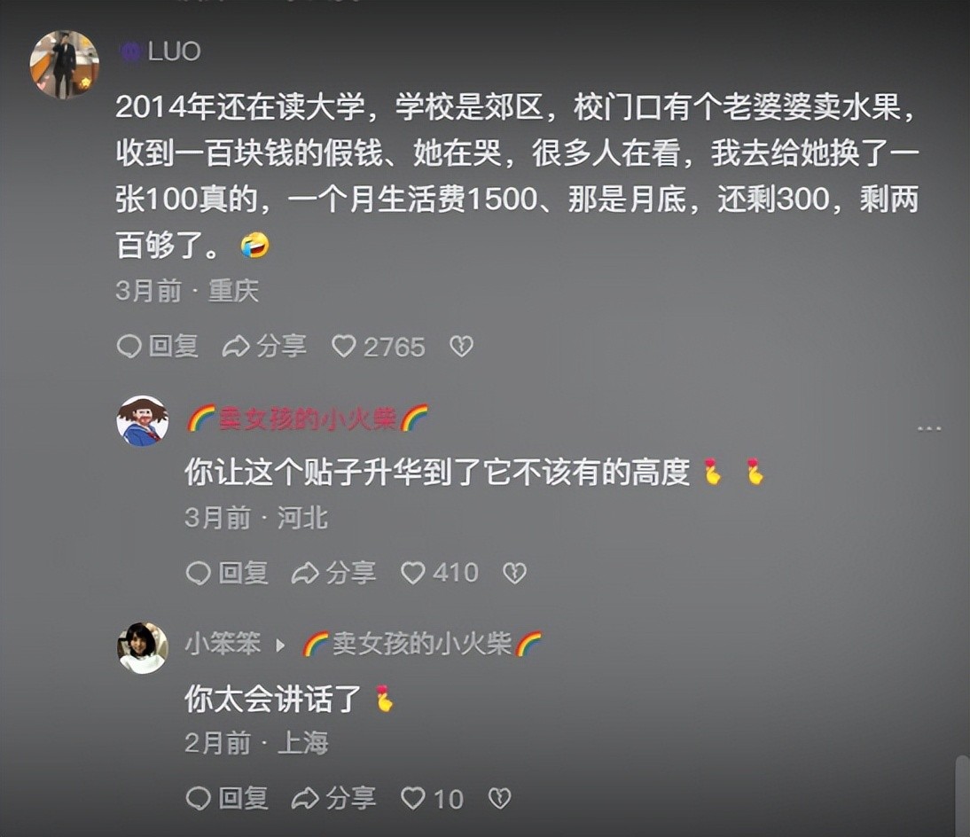为了钱,你的勇气非常可嘉,反正是震惊到我了,哈哈。