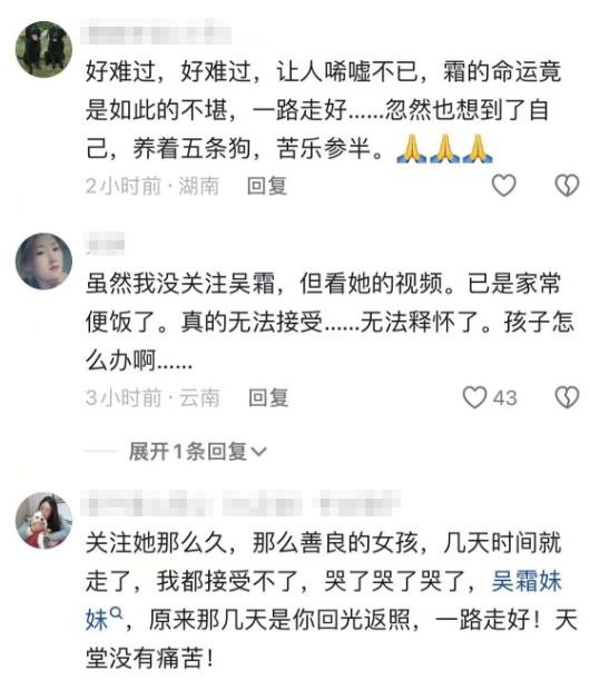吴霜去世后,来自全国各地的网友纷纷表示遗憾,愿她一路走好。
