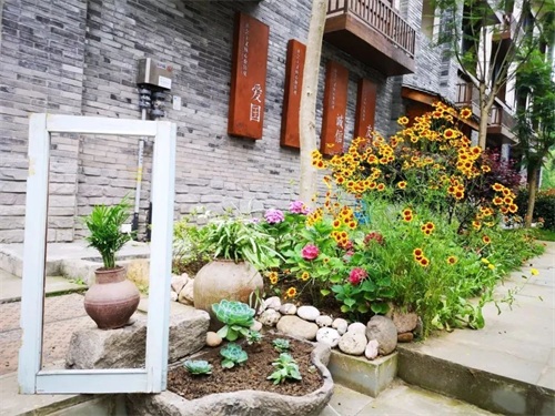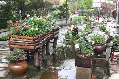 现如今场镇的优美形态已经呈现,郁郁葱葱的苗木,精心布置的盆栽花卉,各种以老旧物品为素材的设计创作,让人大饱眼福。