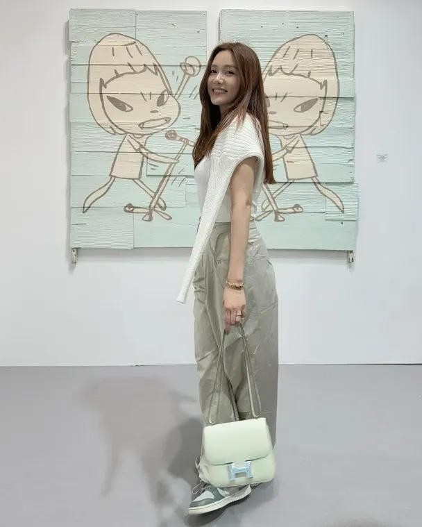 日前靓汤将看展览时的相片发在社交网,不过所有展品都不够她手上的名牌包包抢眼,不少女性网友都对她的手袋十分关注,也有人留言指靓汤的包包至少要12万多,靓汤更以一身粉绿色装束衬晒色,就连走过去合照的展品都同色系的,不得不说靓汤真的很会拍照。