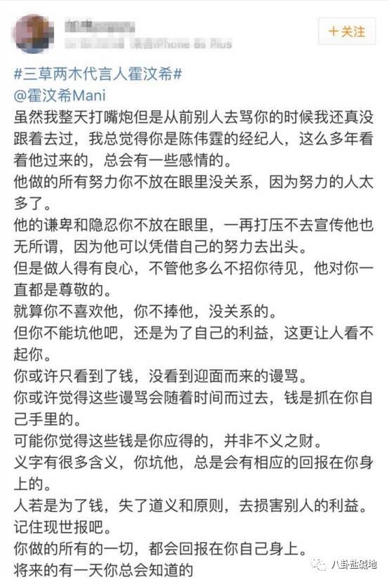 从香奈儿、雀巢、百威等等,到一个不知名的微商品牌,消息出来后,陈伟霆的粉丝“女皇”们炸开了锅,集体换头像怒撕经纪人霍汶希,认为她收了好处,不顾艺人的利益,要求立即毁约!