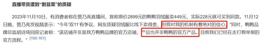 去年的时候贾乃亮在带一款羽绒服,声称原价2899元,现在直播间仅仅需要449元。