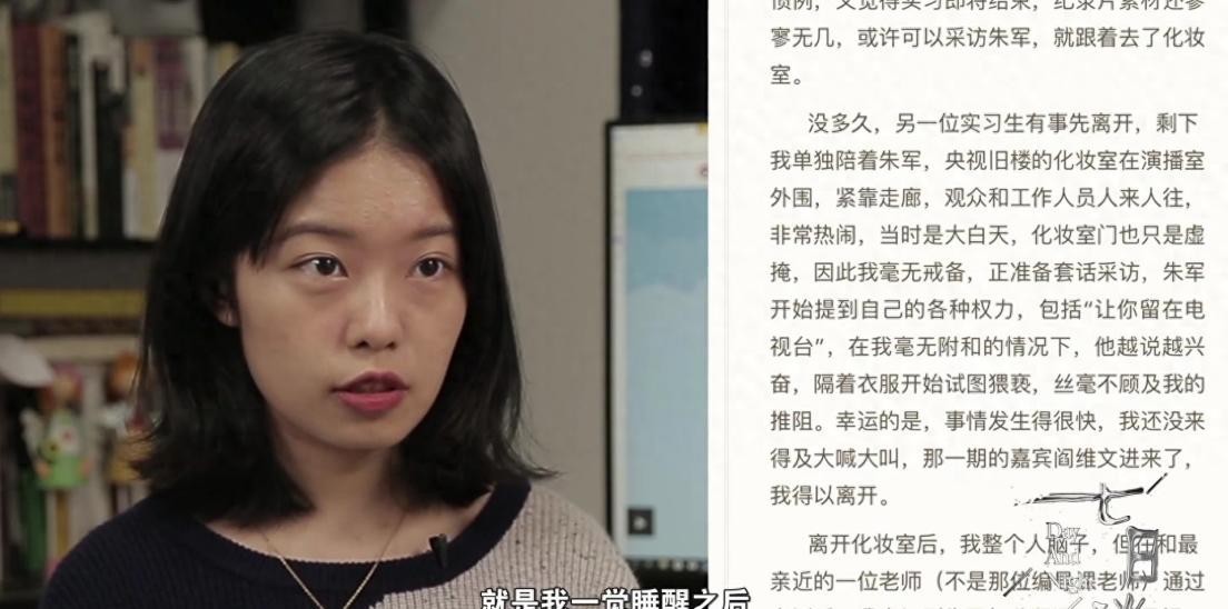 那一天晚上,央视实习生周晓璇(网名弦子)以采访为由,走进了央视主持人朱军所在的公共化妆间。