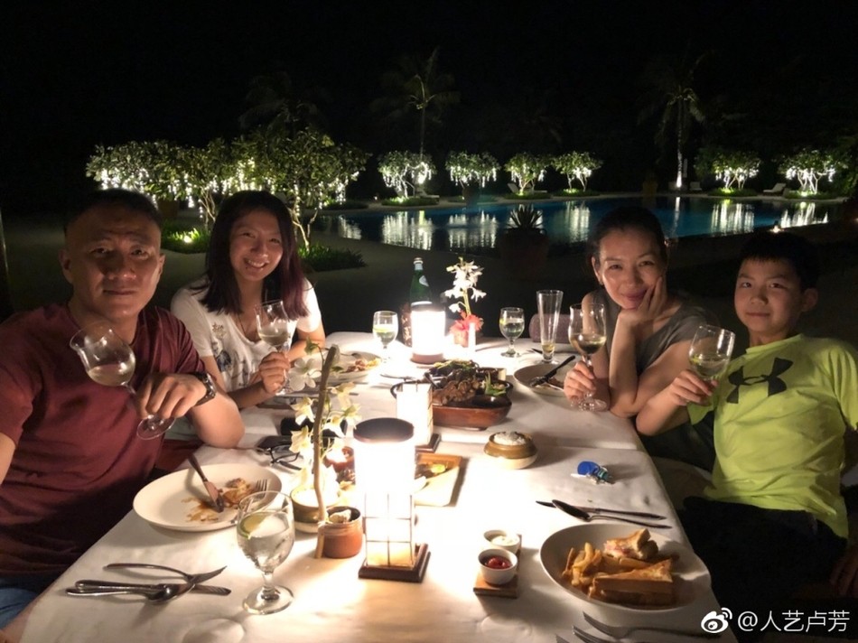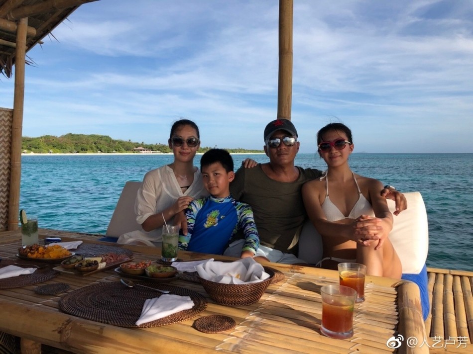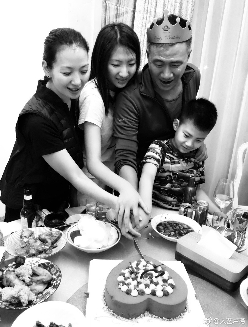 卢芳晒全家福为老公胡军庆生 16岁女儿身材堪比超模