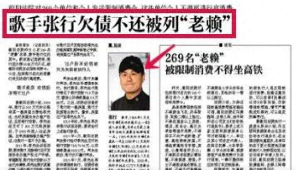 人到中年后还被北京朝阳区登记为老赖,难道说张行的“歌行人不行”。