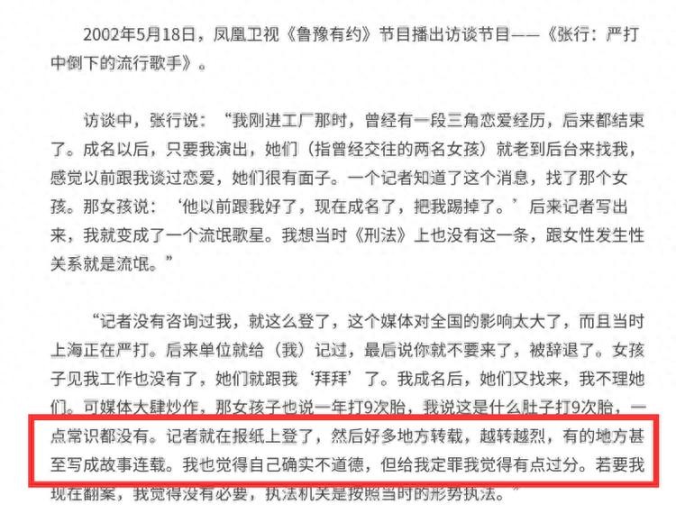 他说自己确实和两个女生同时交往过,但那都是成名之前在电子厂打工时候的事情了,当时自己正在和工厂里的一个女生谈恋爱,但是初恋突然找来了说自己还是忘不掉张行,当时的他不舍得和女友分开,更不舍得看白月光难过,索性直接没告诉对方自己已经有女朋友了。