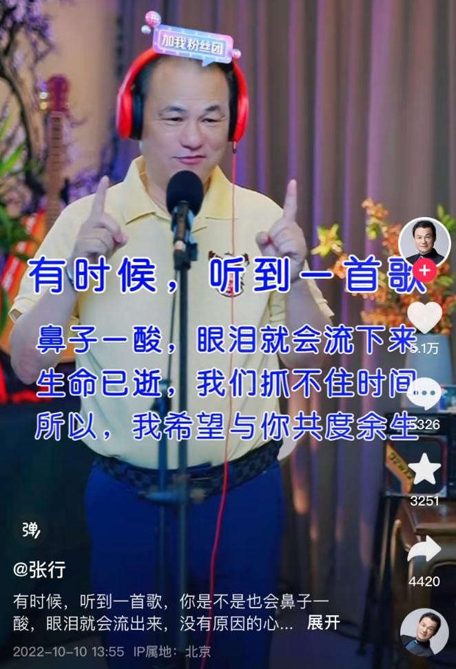 现如今张行早已不在活跃于舞台了,而是跟着潮流做起了短视频,还经常跟开直播和自己忠实的歌迷们聊天互动。