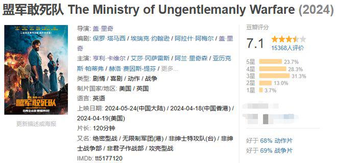 有观众吐槽翻译得很不走心,人家电影原名叫《The Ministry of Ungentlemanly Warfare》,大概意思是 " 不绅士的作战部门 "。