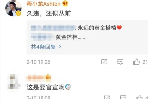 随后,释小龙也在评论区怀念二人友情,他留言表示:“久违,还似从前”,不少网友对两人的友谊感到可贵,并感叹:“永远的黄金搭档。”看到他们的互动后,还有网友调侃道:“这是要官宣啊。”