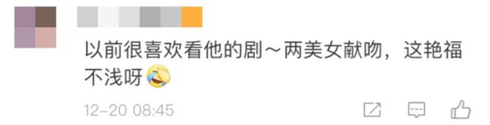 有网友评论"以前很喜欢看他的剧,两美女献吻,这艳福不浅呀!"